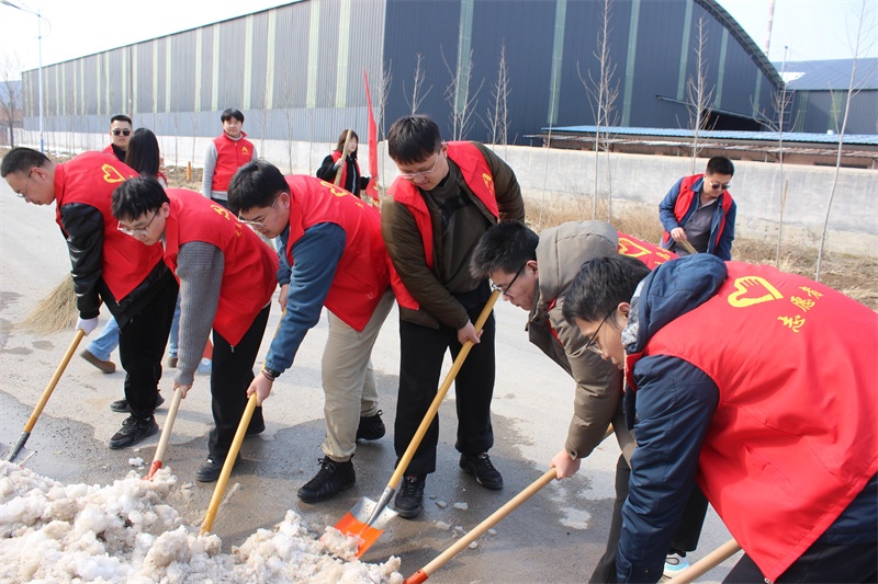 下午,10余名志愿者身著統(tǒng)一服裝,手持鐵鍬、掃帚等工具,對(duì)工業(yè)區(qū)園區(qū)內(nèi)的垃圾和積雪進(jìn)行集中清掃,以實(shí)際行動(dòng)保障道路整潔、暢通,為過(guò)往司乘人員及周邊群眾安全出行保駕護(hù)航。
