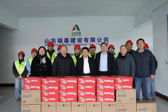 2月11日,公司黨委副書記、總經(jīng)理、董事劉漢興一行到瑞泰公司S236辛濱線濱城繞城段改建工程施工一標(biāo)段項(xiàng)目經(jīng)理部慰問(wèn)一線員工。公司黨委委員、工會(huì)主席、職工董事于光,黨委委員、副總經(jīng)理、安全總監(jiān)張繼軍陪同。