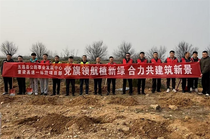 3月12日,正值植樹節(jié),董梁高速一標(biāo)段項(xiàng)目部聯(lián)合五蓮縣公路事業(yè)發(fā)展中心,在叩官鎮(zhèn)G342國(guó)道旁開展“黨旗領(lǐng)航植新綠 合力共建筑新景”植樹活動(dòng)。