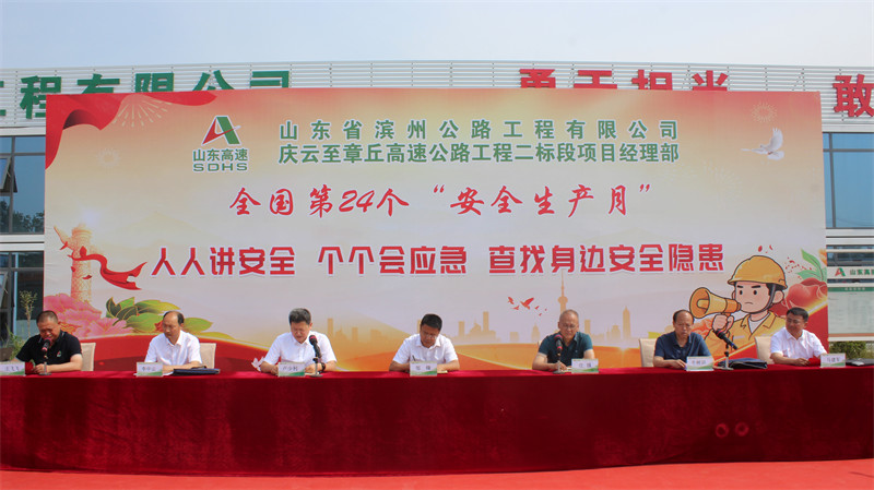5月30日,第24個全國“安全生產(chǎn)月”來臨之際,工程公司慶章高速二標段項目部舉行2025年“安全生產(chǎn)月”活動啟動儀式,旨在強化員工安全生產(chǎn)意識,提升全員應急處置能力,確保工程施工安全有序進行。濱州交發(fā)黨委委員、副總經(jīng)理鄒鋒,安全管理部有關人員參加活動。
